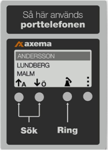 När samtalet från porttelefonen accepteras kommer en röst att berätta att samtalet kommer från “porten”. Därefter kan personen vid porten identifiera sig. För att låsa upp dörren används knapp 5 på svarstelefonen.